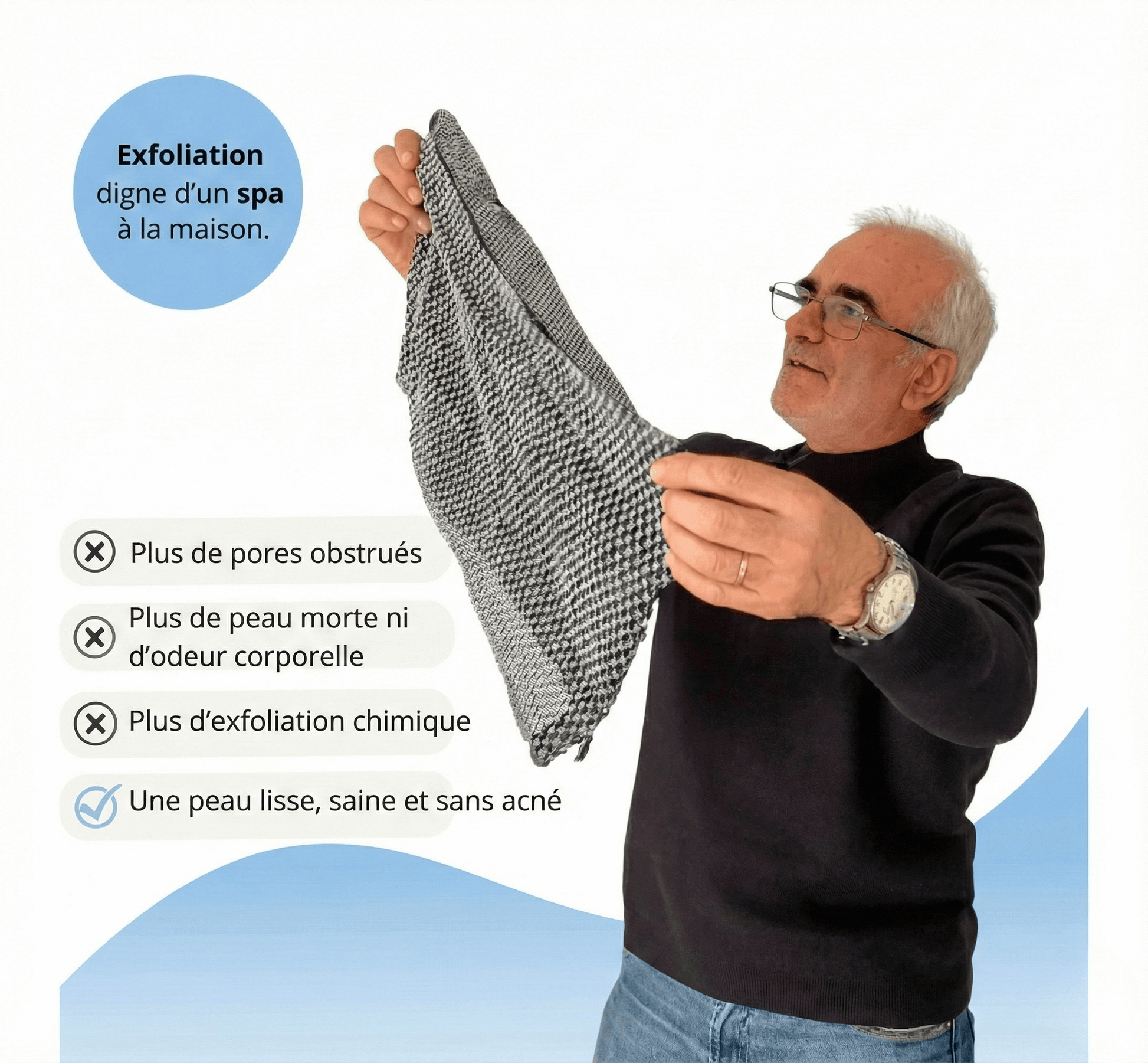"Ma peau semblait terne et sans vie malgré l'essai de divers produits. Un ami m'a recommandé la serviette Blissal, et après 2 semaines de résultats, ma peau paraît revitalisée. La serviette agit efficacement sur les peaux mortes et revitalise mon teint."