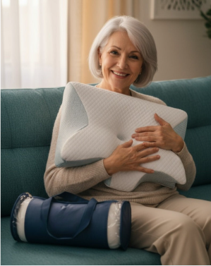 Notre oreiller offre un soulagement ciblé et met fin aux douleurs du matin.